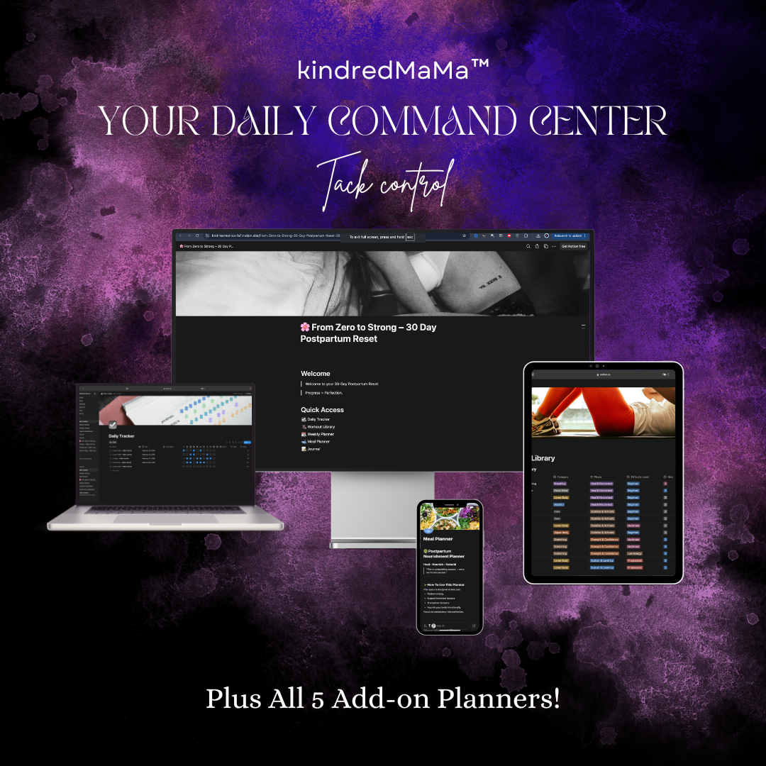 One Notion workspace. Five powerful planners. Everything you need to heal, rebuild, and thrive as a new mom.